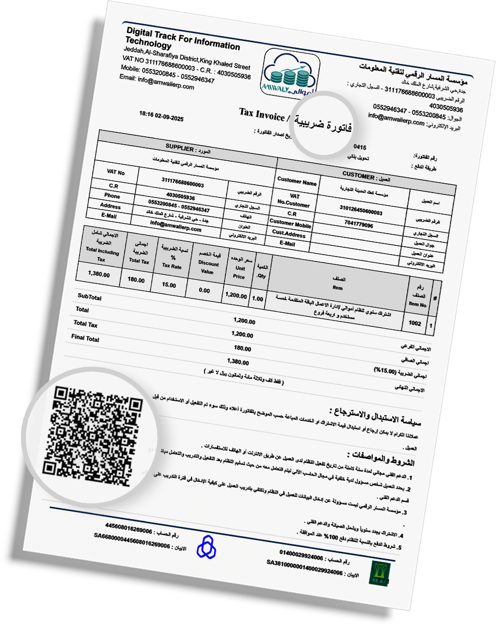 يدعم النظام متطلبات هيئة الزكاة والضريبة والجمارك، بما في ذلك الفوترة الإلكترونية وضريبة التبغ.